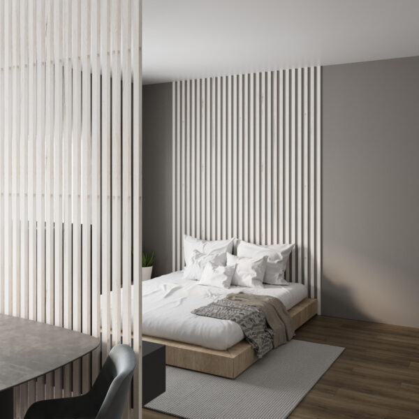 Интерьерные рейки МДФ Stella, форма Бриона, коллекции Standart в мягком оттенке Дуб Санремо – словно нежные хлопковые бутоны.
