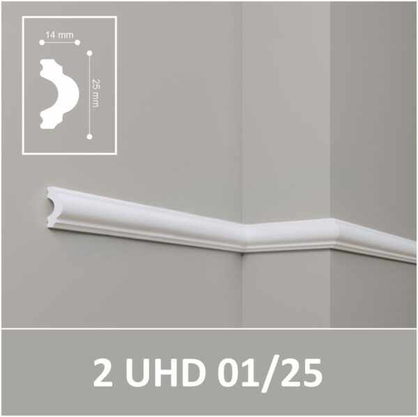 Молдинги UHD Polymer изготавливаются по специальной технологии из полимера высокой плотности, влагостойкие, не имеют реакций на резкое изменение температуры, благодаря чему подходят для помещений с повышенным уровнем влажности.