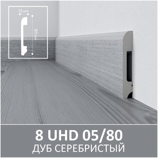 Плинтус напольный из полимера ультравысокой плотности 8 UHD 05/80 2.40м Дуб Серебристый